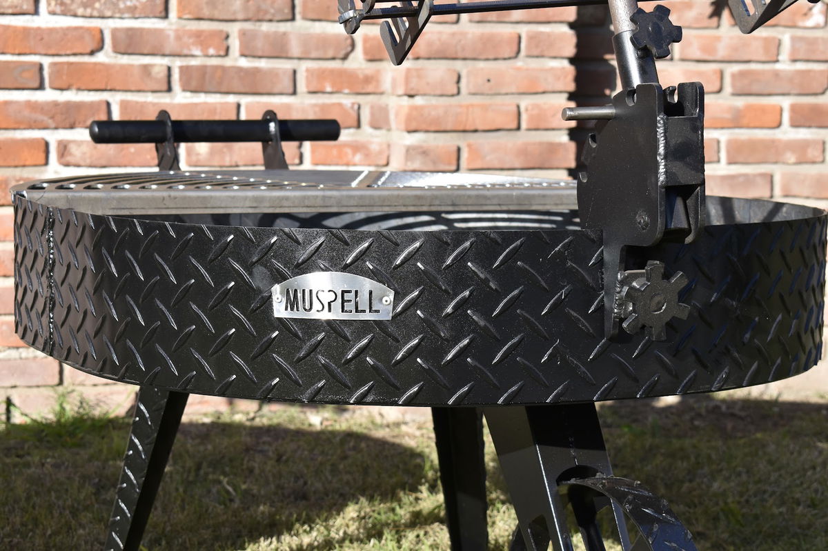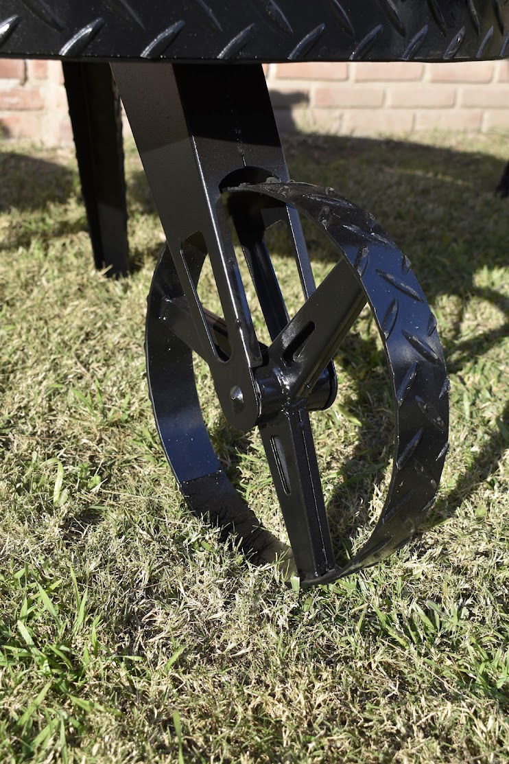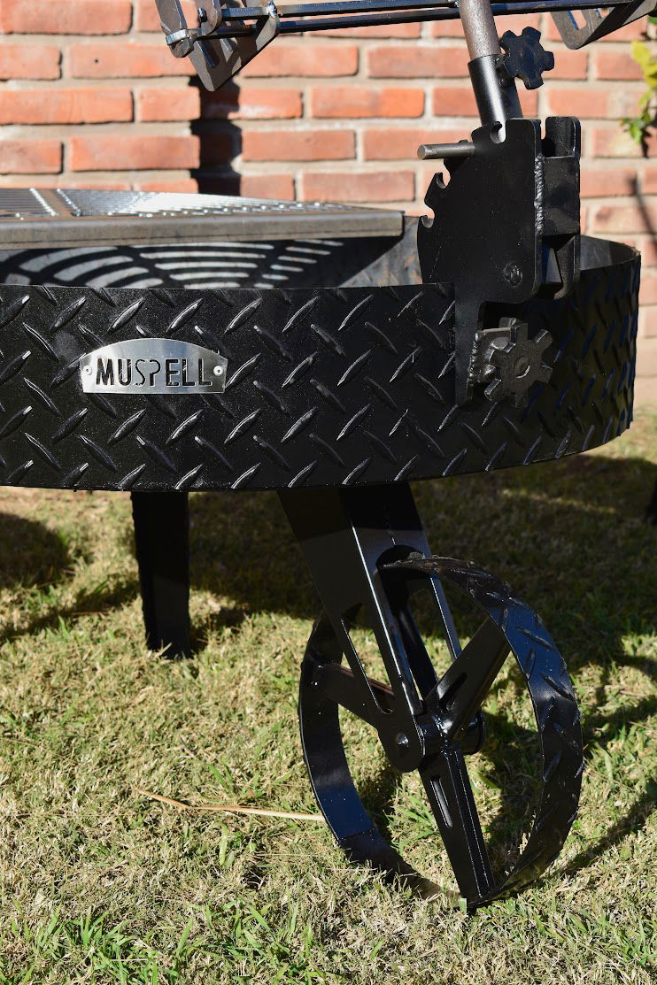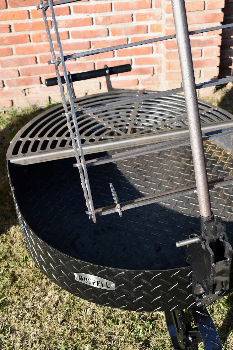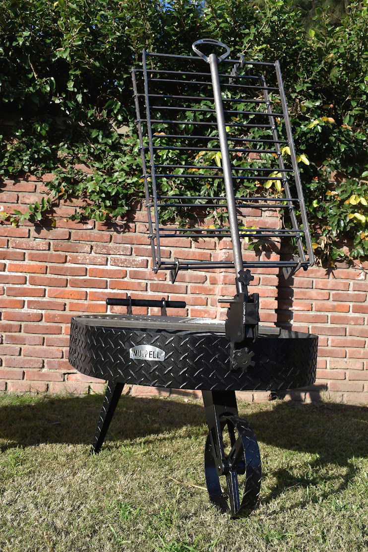 La altura desde el suelo hasta el borde superior del asador es de 60cm. Posee una rueda delantera para facilitar el traslado.
