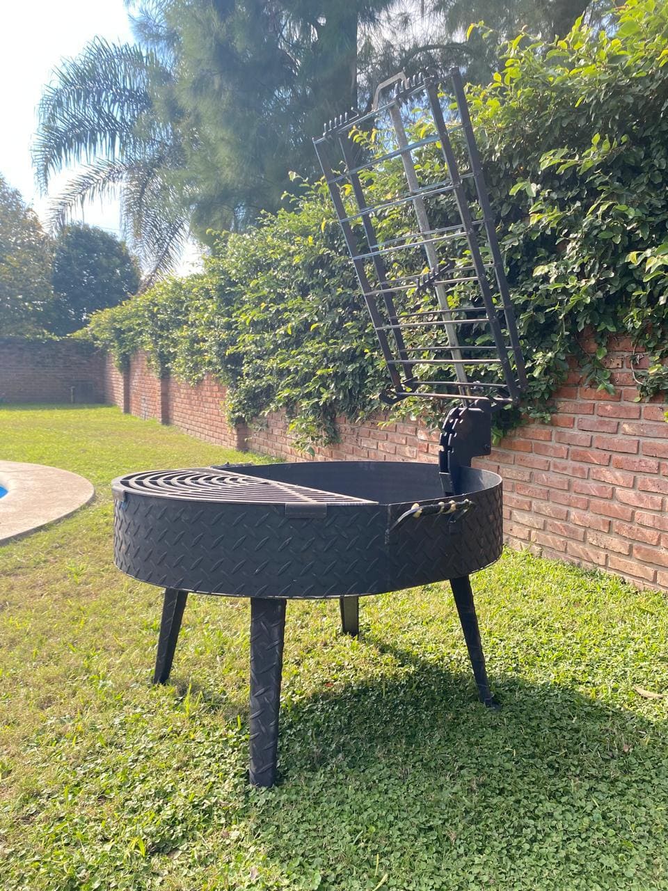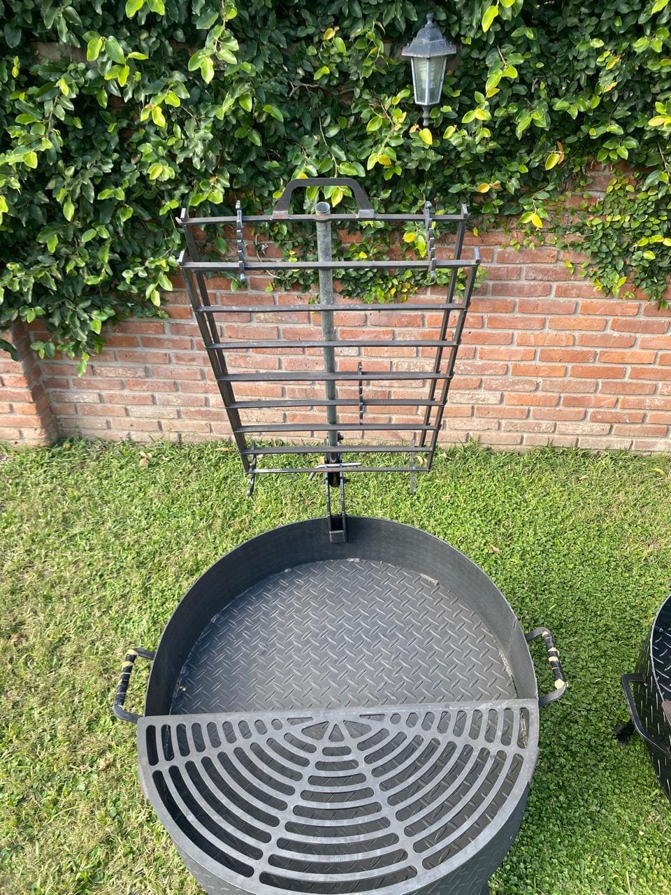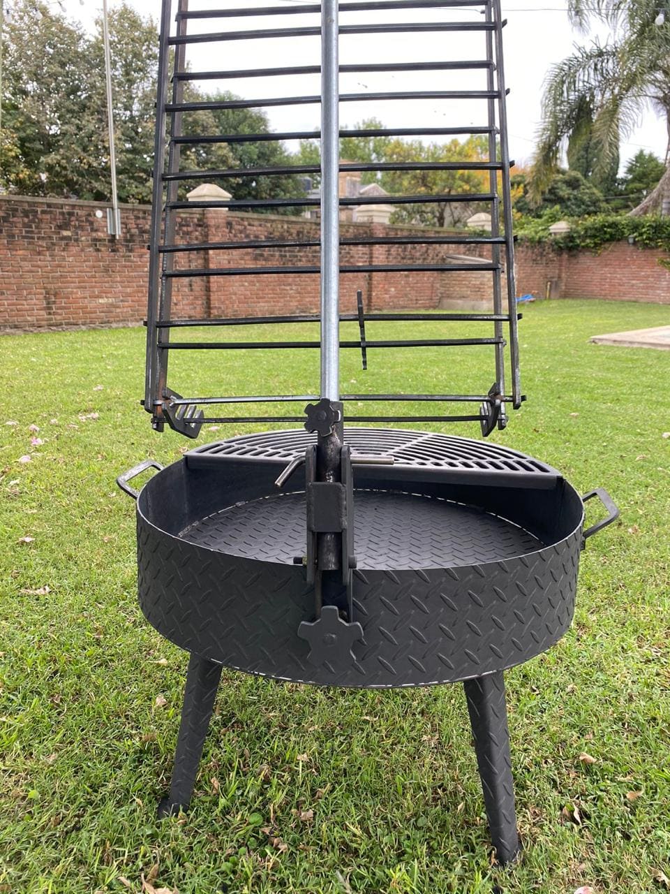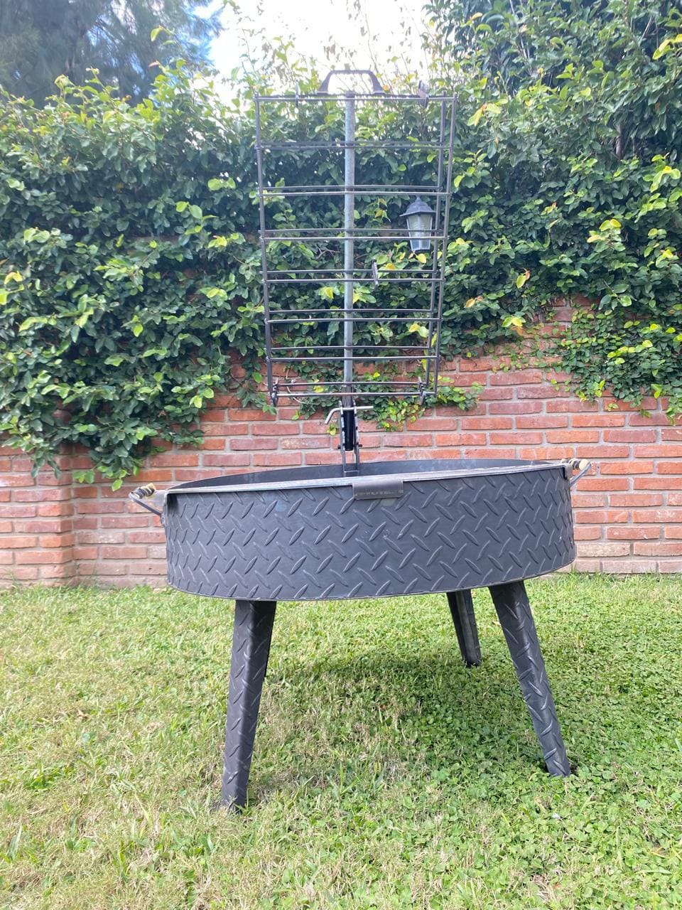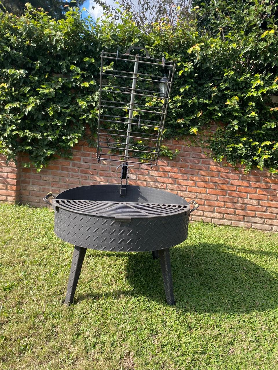 Con este fogonero asador podés cocinar a la estaca y a la parrilla. La estaca tipo "prensa", está montada en un soporte que le posibilita una regulación angular de 5 posiciones, para optimizar la cocción. La media parrilla te permite asar de forma tradicional.