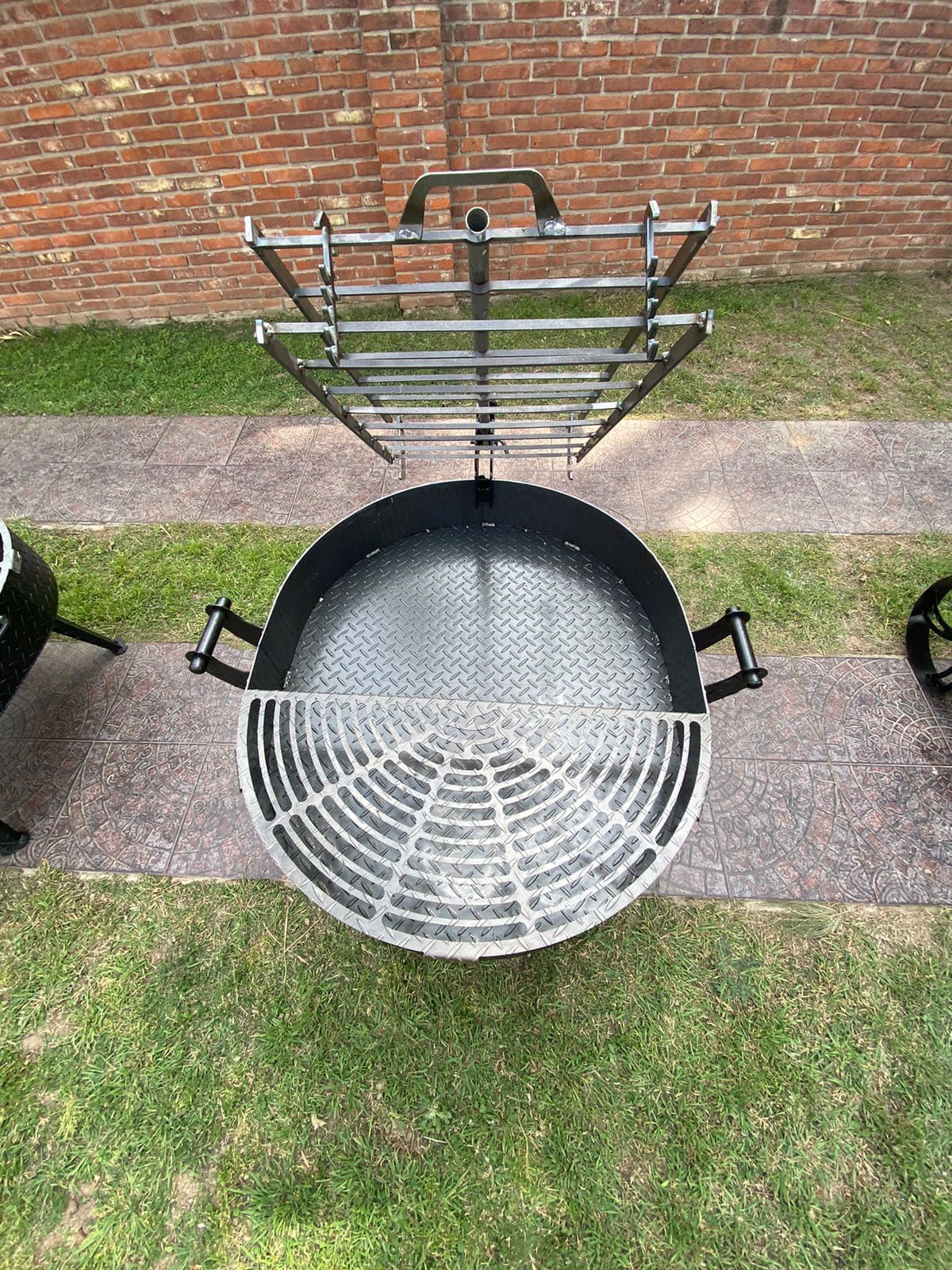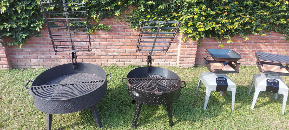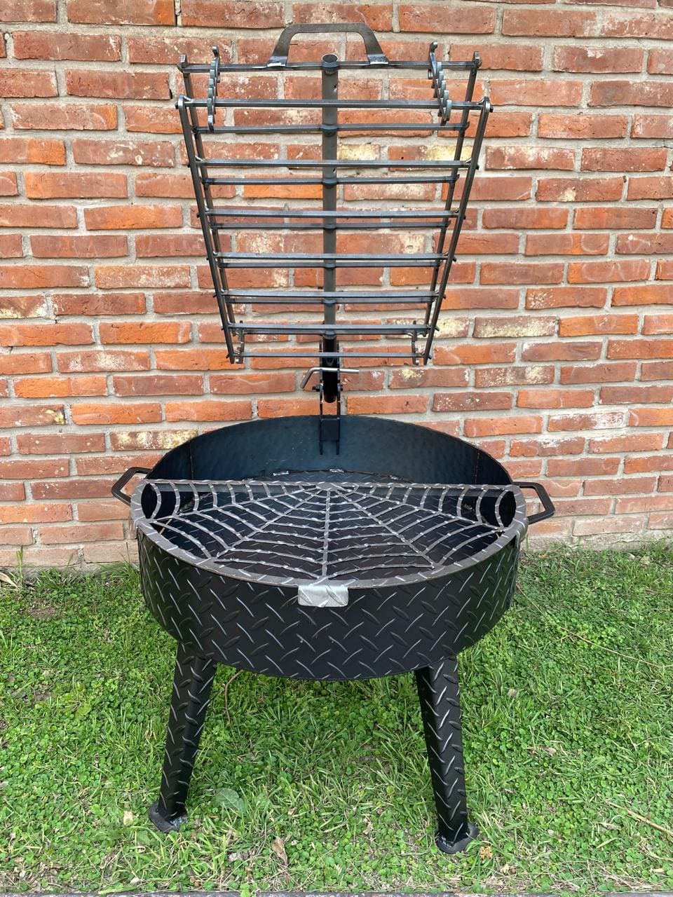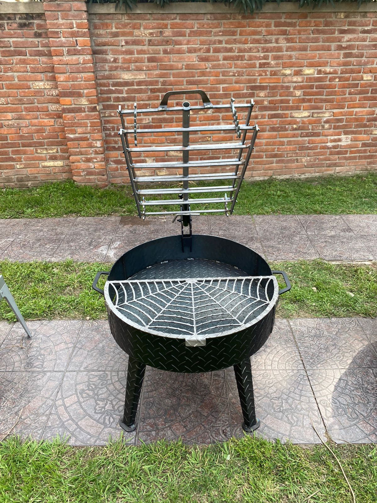 Con este fogonero asador podés cocinar a la estaca y a la parrilla. La estaca tipo "prensa", está montada en un soporte que le posibilita una regulación angular de 5 posiciones, para optimizar la cocción. La media parrilla "spider" te permite asar de forma tradicional.