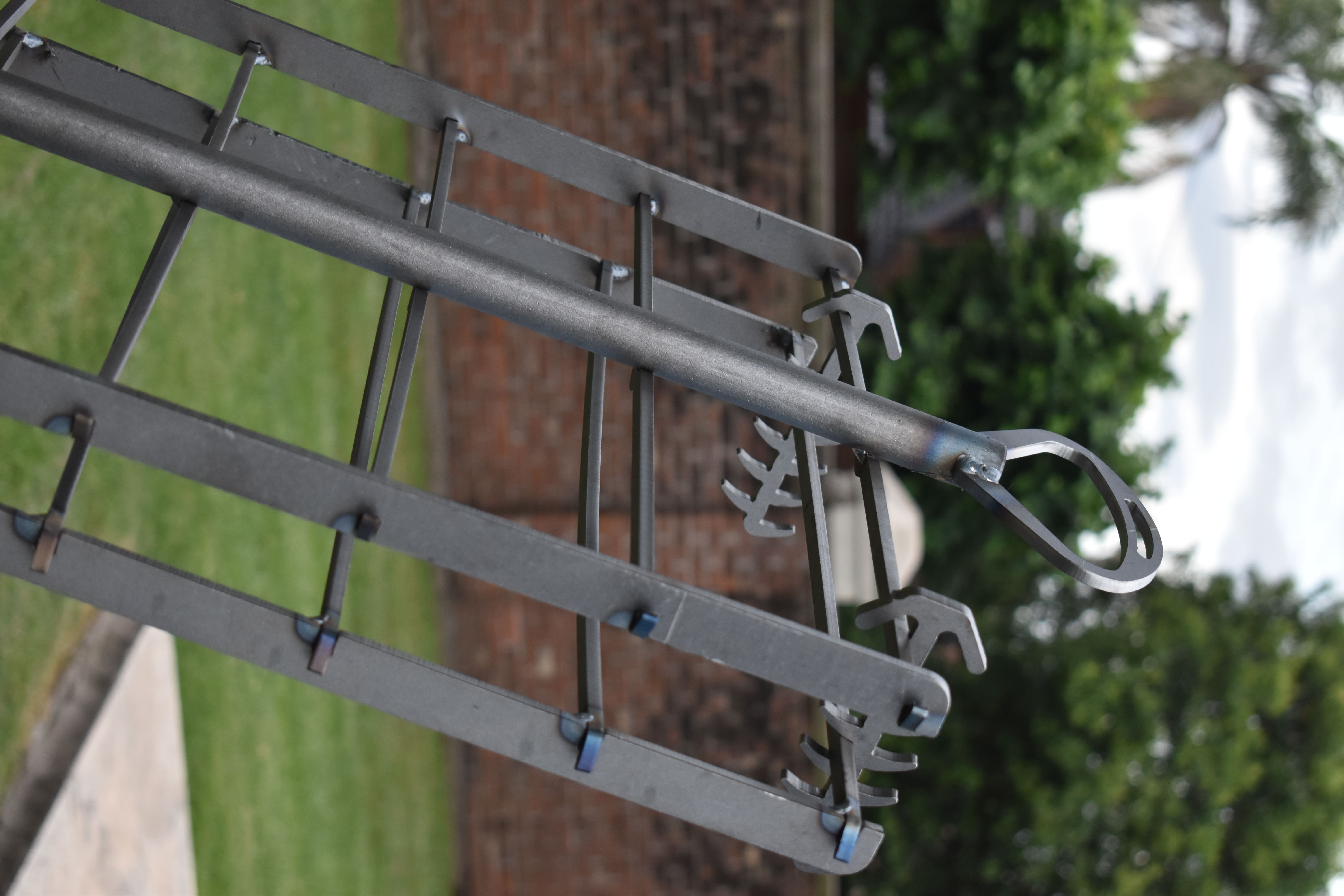 Estaca tipo libro de 50 cm x 80 cm. Las dos partes de la estaca inmovilizan la carne mediante